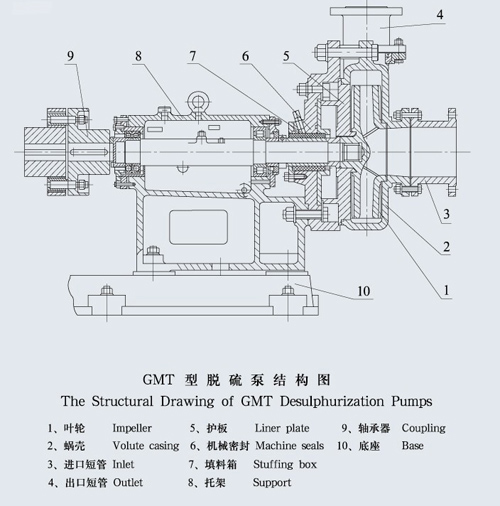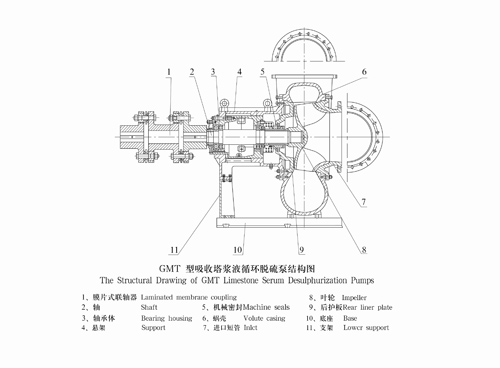 脱硫泵结构为单级单吸托架式(悬臂式)离心泵。
