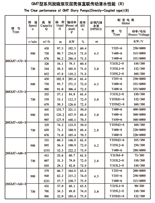 脱硫泵过流部件的设计,符合含有固体颗粒与流道的接触磨蚀,并采用自行研制的优质高合金耐磨耐腐蚀材料,确保泵长期无故障运行。